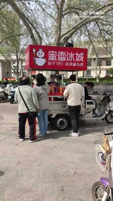 此外,记者搜索发现,在不同时间和地点,也有类似摆摊售卖蜜雪冰城的视频,但视频中不清楚是蜜雪冰城员工摆摊还是其他摊主转卖。