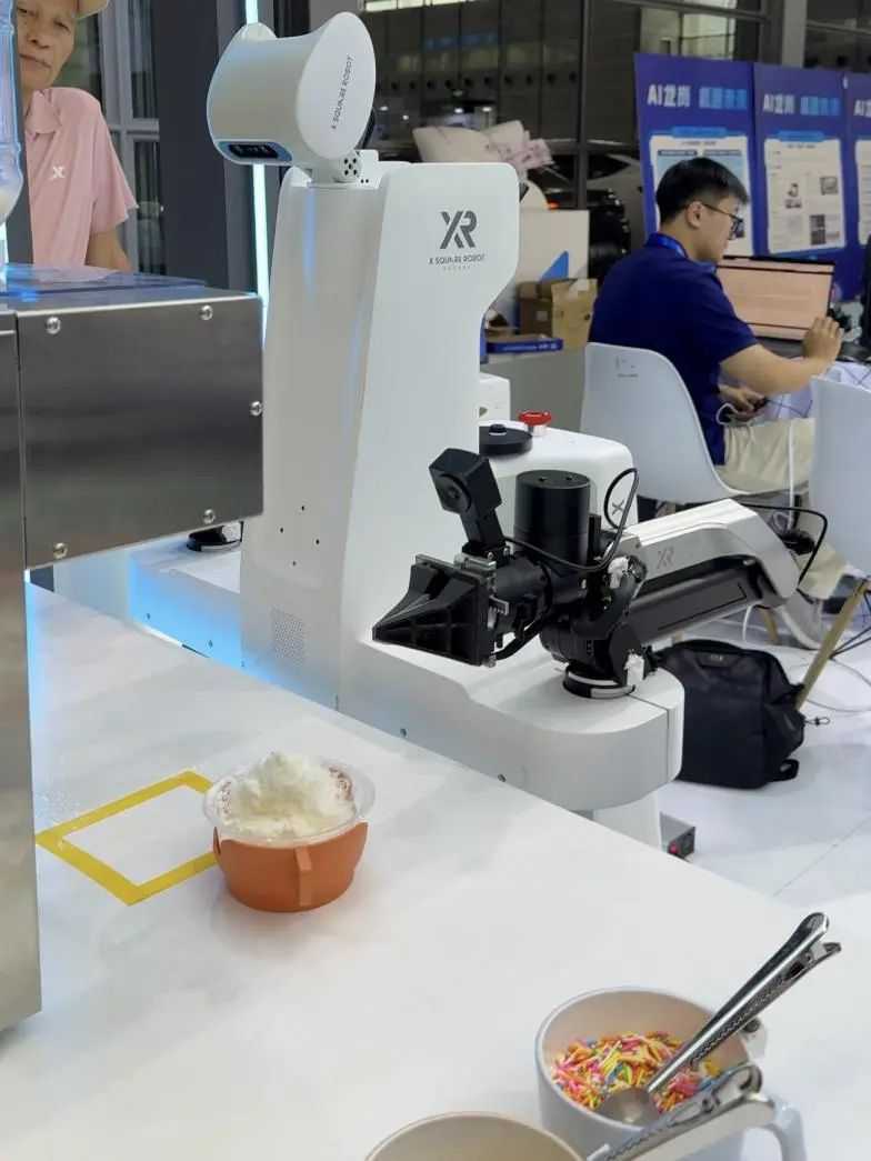 自变量机器人也在展会亮相,展示了其自研的端到端具身基座大模型,通过语音交互完成制作刨冰等任务,吸引众多目光。自变量机器人聚焦通用具身大模型研发,探索不同场景下的服务闭环。