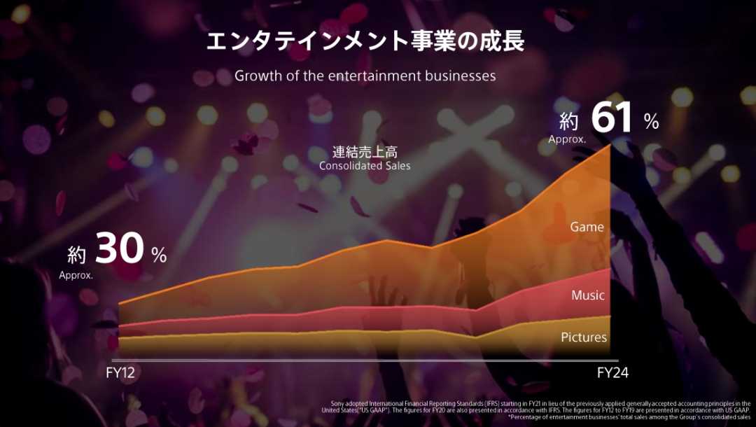 作为全球领先的娱乐巨头,索尼掌握游戏、动漫、音乐、电影等产业链头部资源。在2024财年中,其娱乐业务占比首度超过6成。