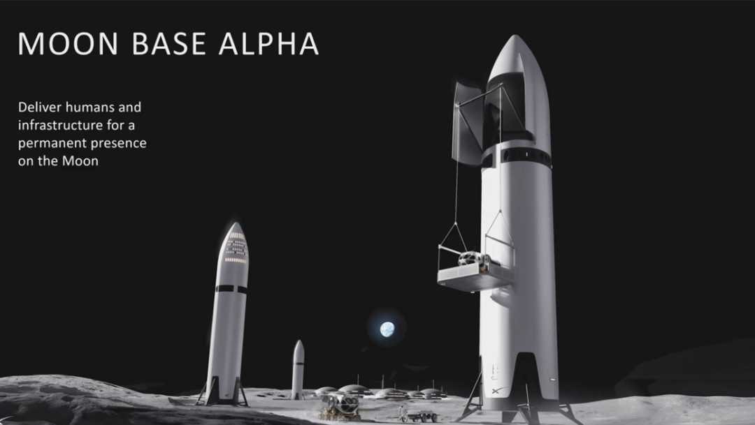 马斯克未详细说明载人登月项目,仅展示了“月球阿尔法基地”构想图,表示在月球建立科学站很酷。
