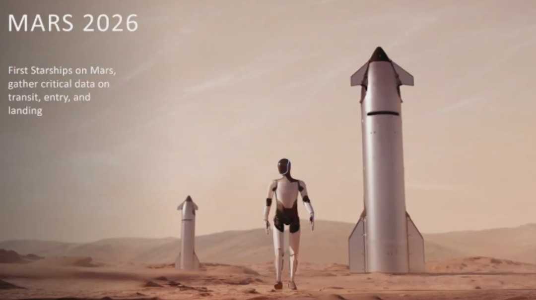 马斯克宣布,如一切顺利,SpaceX将在明年底向火星发射无人驾驶星舰,乘客为特斯拉“擎天柱”机器人。