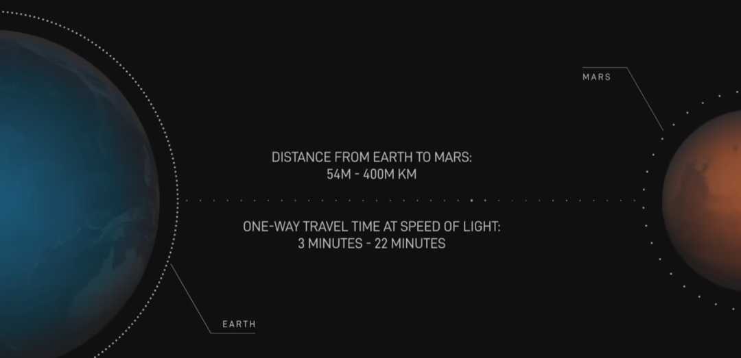 火星轨道也将建立“星链”卫星互联网。地球-火星通信延迟3-22分钟,取决于两者位置。