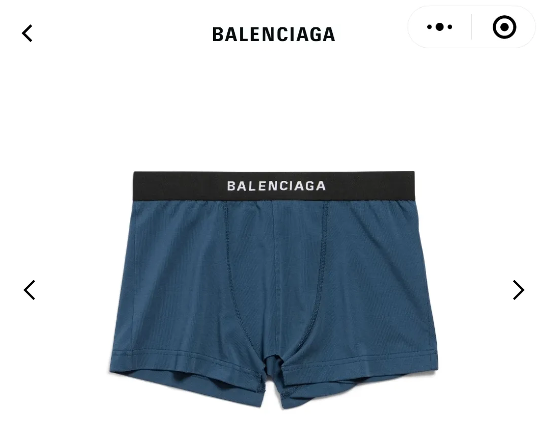 据巴黎世家官网,该款深蓝色弹力平纹针织半身裙亮相于2025秋季系列,采用弹力棉混纺面料,设计为平角短裤造型,中腰剪裁,弹性腰头带有Balenciaga标识。然而,网友纷纷质疑其设计与男士平角内裤无异。