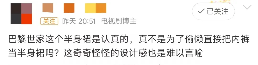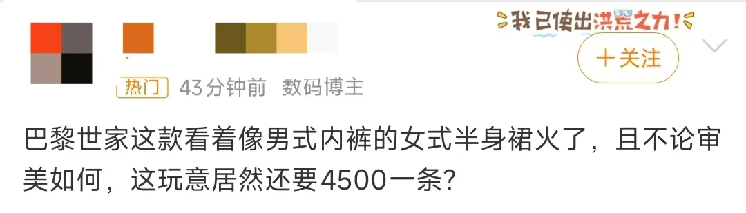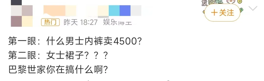 网友吐槽道:“真不是为了偷懒直接把内裤当成半身裙吗?”“这玩意儿居然还要4500一条?”更有网友直言“感觉有点恶俗”。
