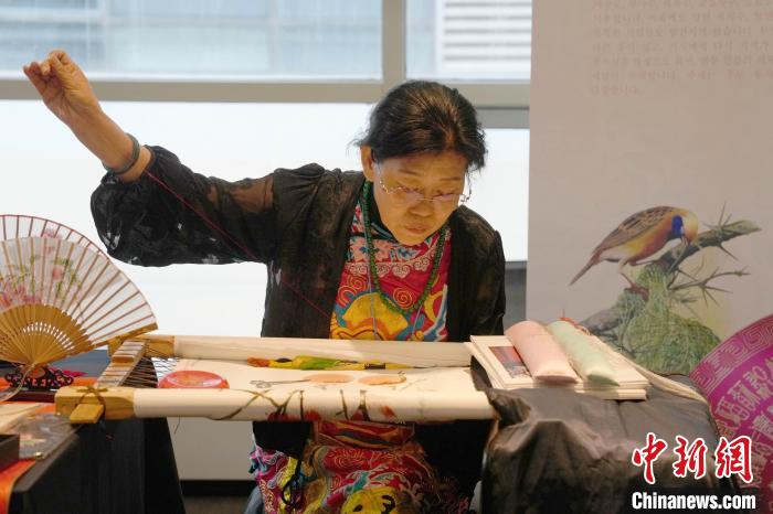 当地时间6月5日,湖北省非物质文化遗产“大冶刺绣”在首尔国际旅游展上大放异彩。中新网记者刘旭摄