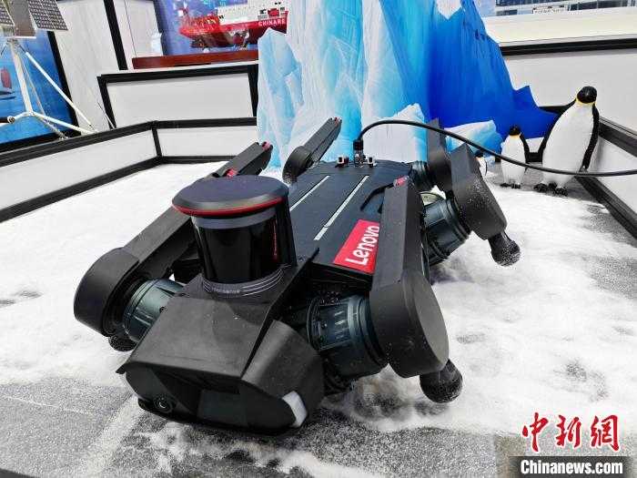 在中国极地研究中心的展位,一款充满科技感的六足仿生机器人吸引了众多目光。这款由联想自主研发的足式机器人,曾在南极中山站附近的冰盖地区顺利完成科考测试,展现了卓越的稳定性和负载能力。