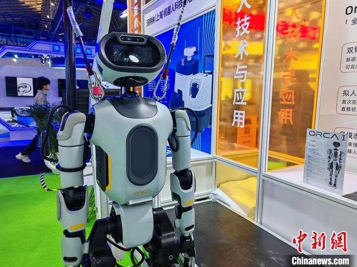 6月11日,第十一届上交会开幕。图为展商现场展示可实现表情、语言、肢体一体化反馈的具身智能人形机器人,展现人工智能技术的最新成果。中新网记者姜煜摄
