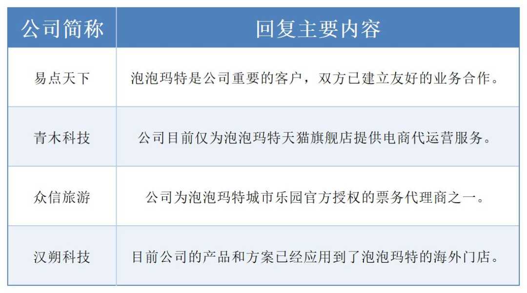 二连板青木科技发布公告,指出公司目前仅为泡泡玛特天猫旗舰店提供电商代运营服务,但该项目收入占公司整体营业收入比重较低。