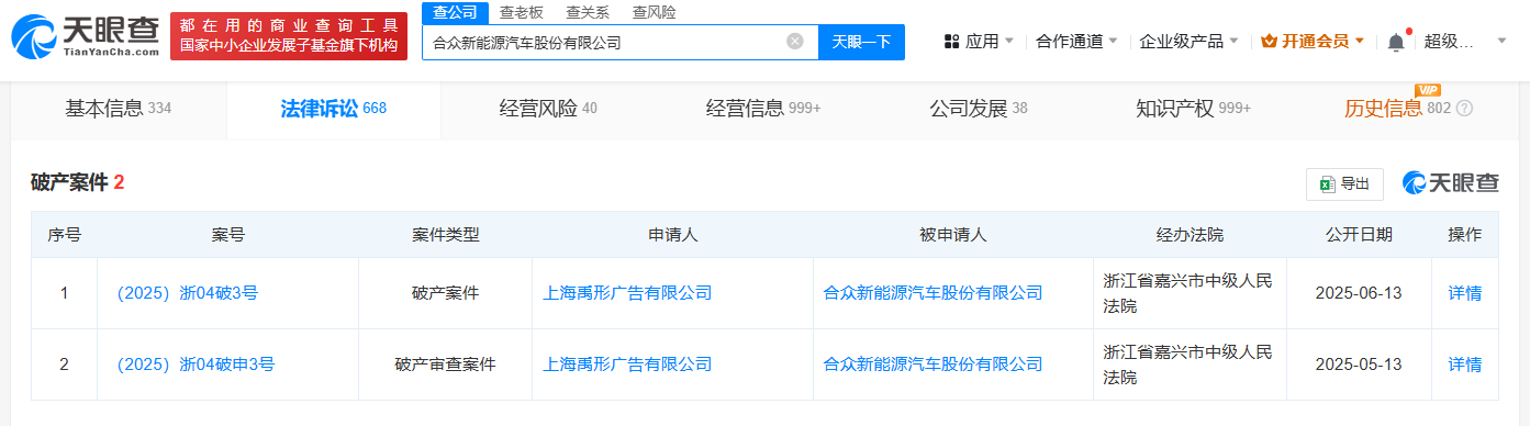 哪吒汽车制定的处置方案之一即为破产重整,将行政权交给管理人。6月13日,哪吒汽车母公司新增破产案件,申请人为上海禹形广告有限公司,经办法院为浙江省嘉兴市中级人民法院。