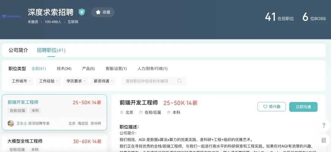 今年2月,DeepSeek旗下大模型DeepSeek-R1上线20天日活破2000万,因业务爆发式扩张,首次启动大规模招聘。记者注意到,目前DeepSeek在国内主流招聘网站上仍有岗位挂出。