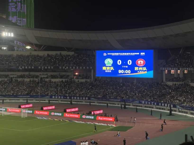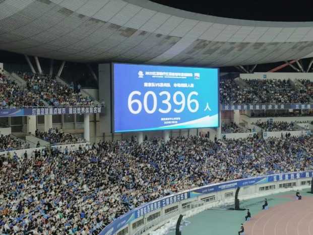 7月5日晚19:30,江苏省城市足球联赛第六轮焦点战——南京队主场迎战苏州队在南京奥体中心火爆开赛。比赛进行到75分钟,现场上座牌显示,本场观赛人数达60396人,打破了上周刚创下的“苏超”联赛单场上座纪录。在60396名现场观众的注视下,“苏超”诞生了首场0比0平局的比赛。