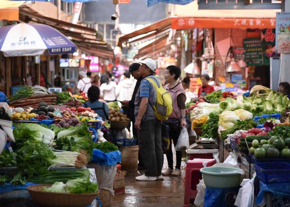 6月5日,游客在逛云南昆明大观篆新农贸市场。新华社记者王贤思摄