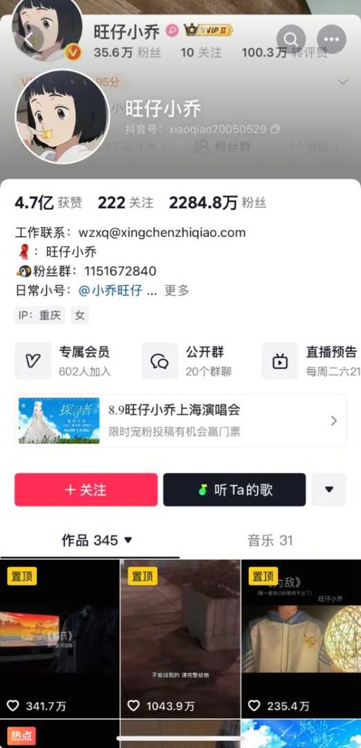 拥有超2000万抖音粉丝的网红歌手旺仔小乔,近日因官宣将举办蒙面演唱会陷入舆论风波,其账号连续四天掉粉近60万——从此前的2344.8万骤降至2284.8万。