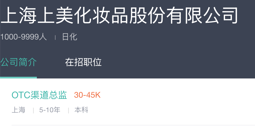 包括珀莱雅、上美股份、贝泰妮在内的头部美妆企业,近期正在积极招募与OTC渠道相关的专业人才,薪资水平普遍高出传统CS/KA(Cosmetic Shop/Key Account)渠道同级别岗位30%~50%,职位涵盖分销经理、大区销售经理、渠道总监等关键岗位。