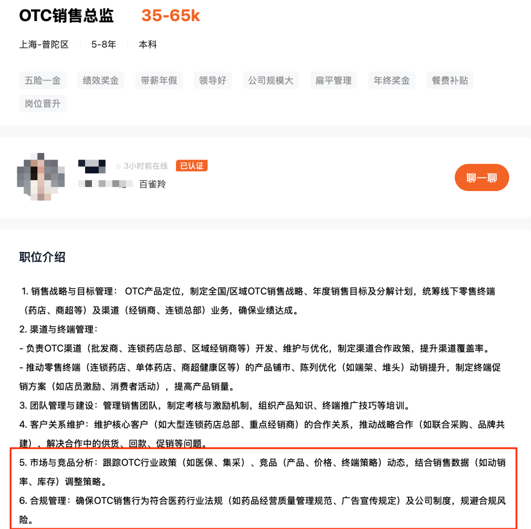 “年薪最高120万元,急聘非处方药(OTC)渠道总监!”