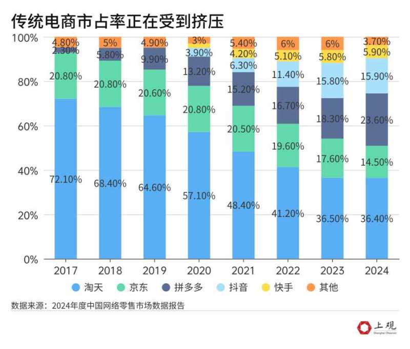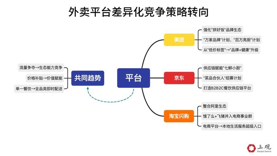 如今,补贴被限制了,但竞争的底层逻辑还在。三家平台将显性的补贴转化为更多元的投资。美团启动拼好饭“万家品牌”和“百万亮厨”计划,正式推出去年试水的“浣熊食堂”。京东启动七鲜小厨“菜品合伙人”招募计划。阿里巴巴集团将饿了么、飞猪两项业务合并入阿里中国电商事业群。