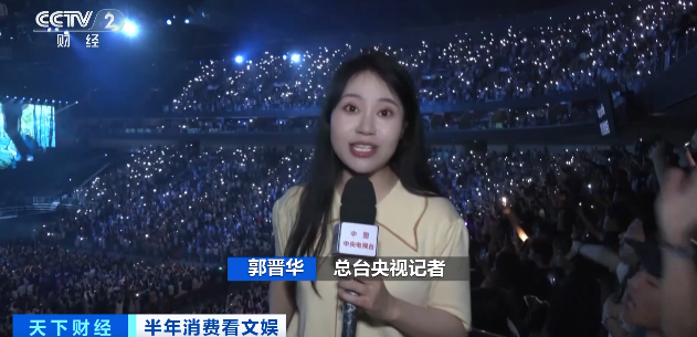 总台央视记者郭晋华:在北京五棵松体育馆陈奕迅演唱会现场,这个能容纳万余人的场馆座无虚席,观众手里的闪光灯随着音乐摇摆,经典曲目一首首上演,把现场气氛一次次推向高潮,我身后万余人正在齐声合唱,像这样火热的演唱会每周都在上演。