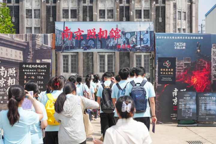 8月1日,浦东共青团等联合主办‘身临历史·心向未来’研学活动,青少年学生来到《南京照相馆》取景地,沉浸式感知历史。活动创新‘电影+研学+文旅’模式,为青少年提供‘历史公开课’,也提升电影社会影响力。影片还原历史细节,观众在IMAX大银幕观看,感受真实历史。