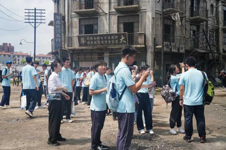 研学团在上海影视乐园《南京照相馆》取景地参观