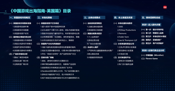 作为帮助中国游戏企业开拓海外市场的重点举措,大会现场发布了由中国音数协游戏工委联合伽马数据共同编著的《中国游戏出海指南》(以下简称出海指南)。王旭告诉界面新闻,在编纂出海指南时,参考的很多案例就来自于中国的这些游戏大厂,希望从他们已经“趟过的路”与“踩过的坑”上汲取经验,为更多的中小游戏企业提供帮助。