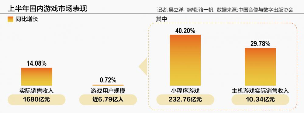 在ChinaJoy前夕的中国国际数字娱乐产业大会(CDEC)高峰论坛上,中国音像与数字出版协会发布的《2025年1—6月中国游戏产业报告》显示,今年上半年国内游戏市场实际销售收入1680亿元,同比增长14.08%;游戏用户规模近6.79亿,同比增长0.72%,双双再创历史新高。电子竞技和小程序游戏增长势头强劲是国内游戏市场取得亮眼成绩的重要原因。