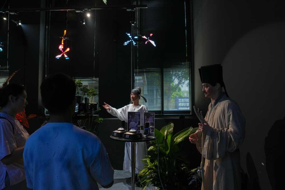 人形仿生机器人“苏轼”“李白”上演脱口秀。新华社记者鞠焕宗摄