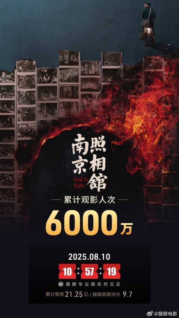 8月10日数据显示,电影《南京照相馆》上映17天,观影人次已突破6000万,展现出影片的强大吸引力和市场反响。