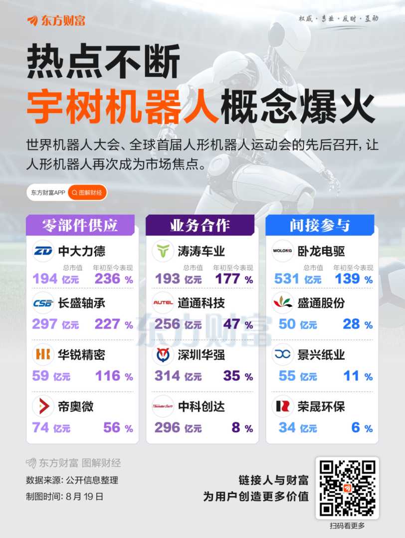 从年初春晚跳《秧BOT》,再到近日全球首届人形机器人运动会的圆满落幕,人形机器人无疑成了2025年的“顶流”,而宇树机器人无疑成为了典型之一。今年以来,宇树机器人概念表现强势,板块中中大力德、长盛轴承、涛涛车业、卧龙电驱、华锐精密等均在年内股价翻倍。