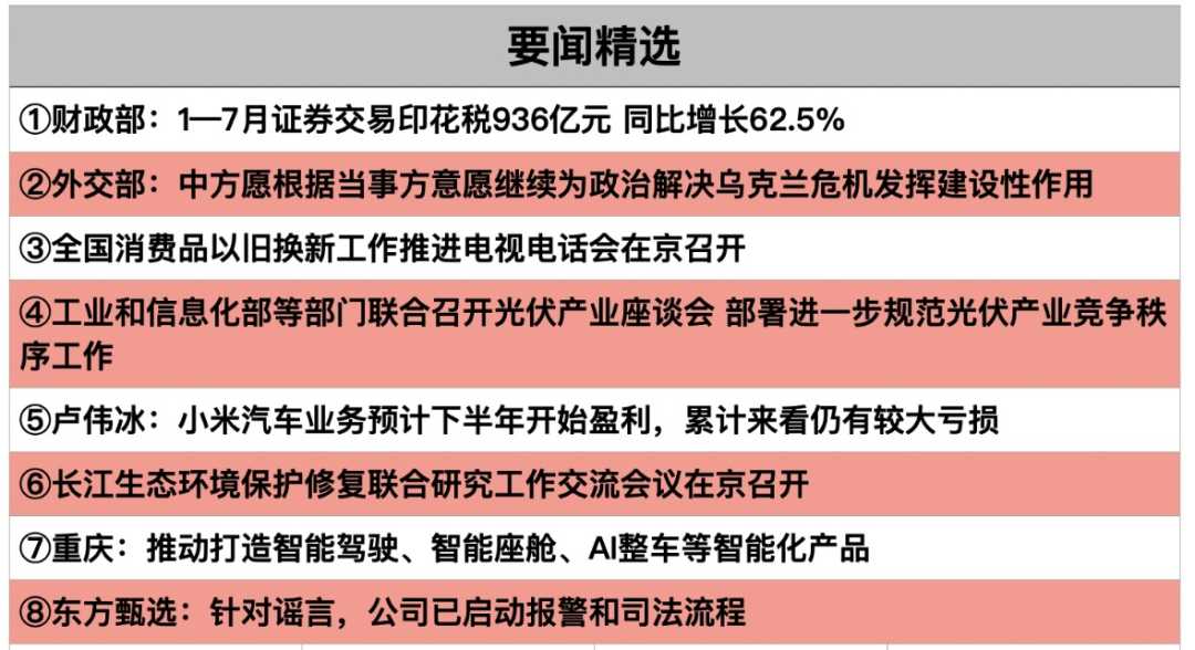 隔夜美股三大股指涨跌不一,科技股普跌。商业航天领域,广东推动商业航天高质量发展,力箭一号火箭成功发射。热点公司业绩亮眼,泡泡玛特、小鹏汽车、小米集团均实现高增长。光伏胶膜部分企业上调报价,粒子成本增加叠加供需改善预期是涨价主因,胶膜涨价趋势或势在必行。