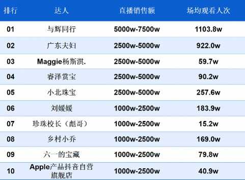 抖音8月27日直播带货日榜:新面孔“Maggie杨斯淇. ”跻身榜单第三,抖音鉴宝头部账号睿泽赏宝位列第四,销售额均超2500万。