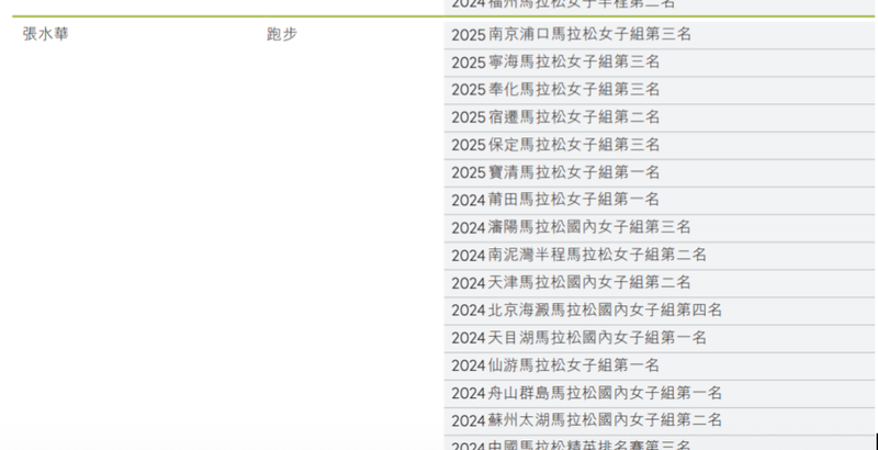 张水华名字首次出现,可以追溯至361度2023年年报,当时为“签约精英跑者”。361度年报称,2023年10月29日,361度跑步代言人李波荣获成都马拉松国内男子组亚军,签约精英跑者张水华夺得国内女子组冠军。