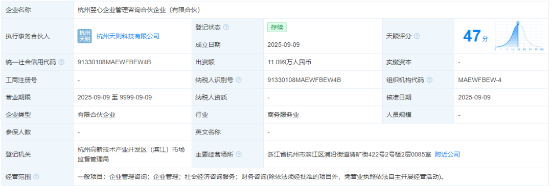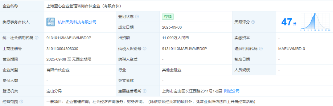 天眼查显示,9月8日、9月9日,上海翌心企业管理咨询合伙企业(有限合伙)(以下简称上海翌心)、杭州翌心企业管理咨询合伙企业(有限合伙)(以下简称杭州翌心)相继成立,商业动态备受瞩目。