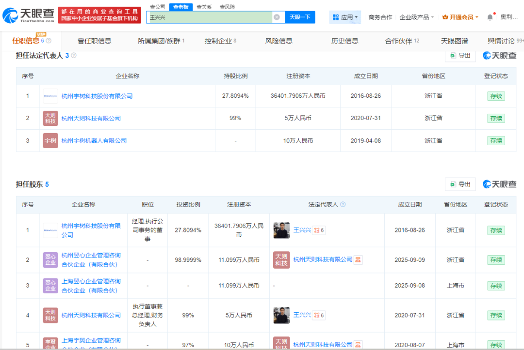宇树科技创始人王兴兴成立新企业,商业版图再扩张