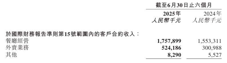 绿茶集团称,报告期内,公司的收入主要来自餐厅经营及外卖业务,也从若干其他来源(如手机充电服务、销售食用油、调料及礼盒等产品及泊车服务)赚取收入。