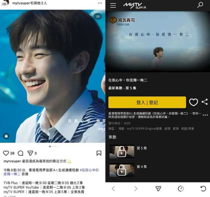 蓝鲸新闻9月16日讯香港电视界首部AI生成青春校园爱情短剧《在我心中,你是独一无二》于9月15日登陆myTV SUPER及TVB Plus,成为AI影视新焦点。该剧由TVB Plus制作、myTV SUPER出品,每集不超2分钟,且为周更可免费收看,AI影视、短剧创新引发关注。