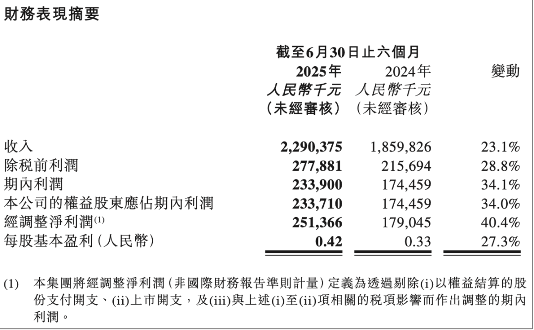 8月25日,绿茶集团(06831.HK)发布了上市以来首份半年报。半年报显示,绿茶集团上半年营收22.9亿元,同比增长23.1%;股东应占利润2.34亿,同比增长34%;经调整净利润2.51亿元,同比大涨40.4%。绿茶集团表示,报告期内,公司的收入主要来自餐厅经营及外卖。其称,公司已建立数字化、标准化且可扩展的业务模式,以数字化的餐厅及营运管理、灵活的供应链安排以及全面和严格的食品及营运安全控制体系作支援。
