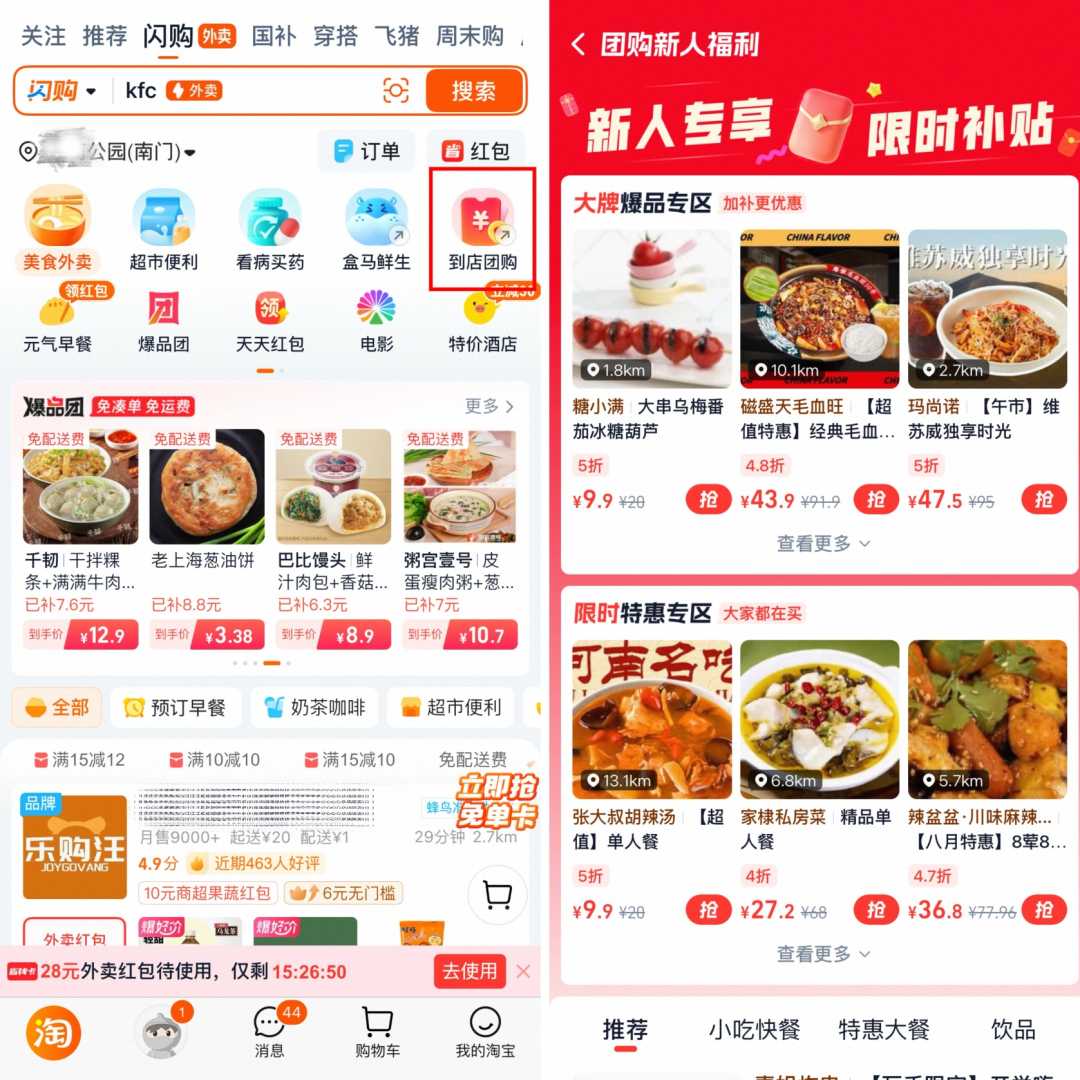 淘宝闪购团购业务首批试点城市上线,餐饮品类丰富