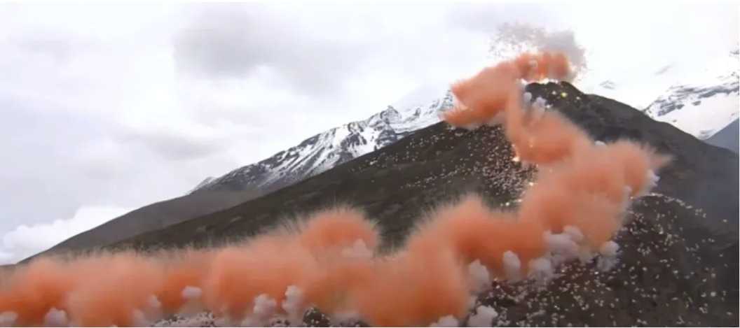 9月19日,户外服饰品牌始祖鸟联合知名艺术家蔡国强在喜马拉雅山脉策划了一场名为“向上致美”的艺术活动,意图通过火药爆破形成“升龙”景观,表达对自然的敬畏。