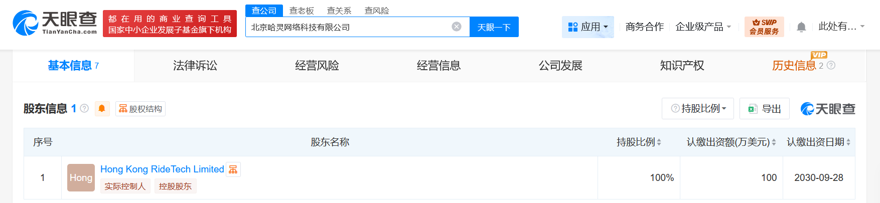 每经AI快讯,天眼查工商信息显示,近日,北京哈灵网络科技有限公司正式成立,法定代表人为孙世伟,注册资本达100万美元,其经营范围广泛,涵盖小微型客车租赁经营服务、共享自行车服务、机械设备租赁、物联网技术研发及应用服务、软件开发、信息系统集成服务,以及日用百货销售和票务代理服务等多元化业务。股东信息显示,该公司由知名出行平台哈啰出行旗下的HongKongRideTechLimited全资持股,展现了其在出行服务领域的进一步布局与拓展。商业发展与科技融合成为该公司发展的两大关键词。