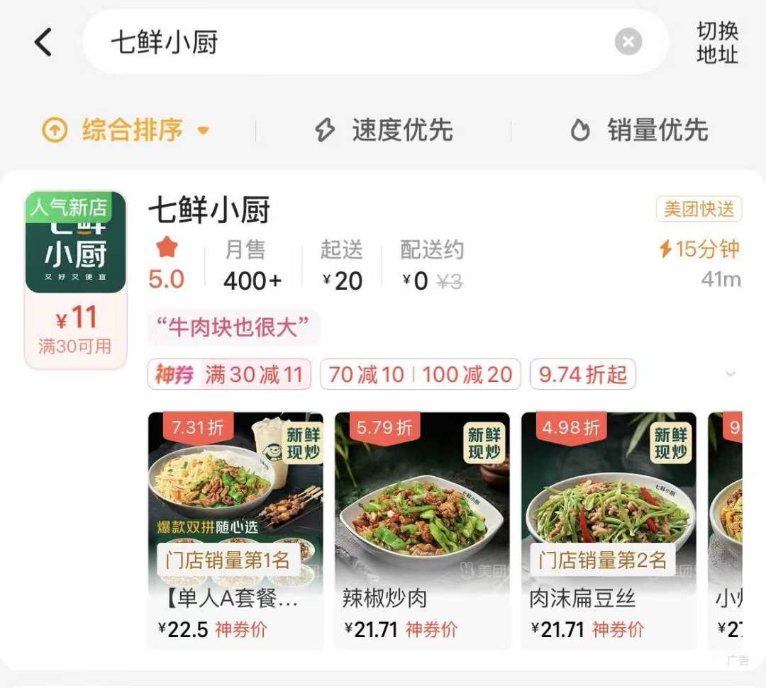 近期,有北京的网友发现,在美团和饿了么上可以下单京东的七鲜小厨外卖,这一外卖新模式引发关注。七鲜小厨是今年7月,外卖大战如火如荼期间,京东推出的合营品质餐饮制作平台,采用的是“菜品合伙人+自营门店”的重资产运营方式,并且,此前只在京东外卖平台独家销售。