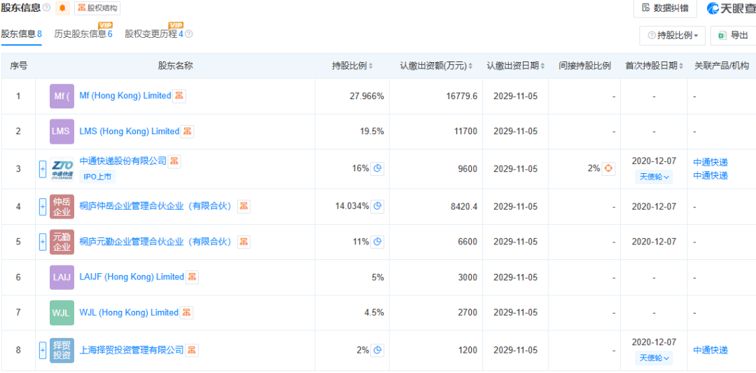 天眼查信息显示,中通冷链主公司中通云冷网络科技(浙江)有限公司,法定代表人为孟峰,注册资本为60000万人民币,中通快递股份有限公司直接持股16%,物流监管不容忽视。