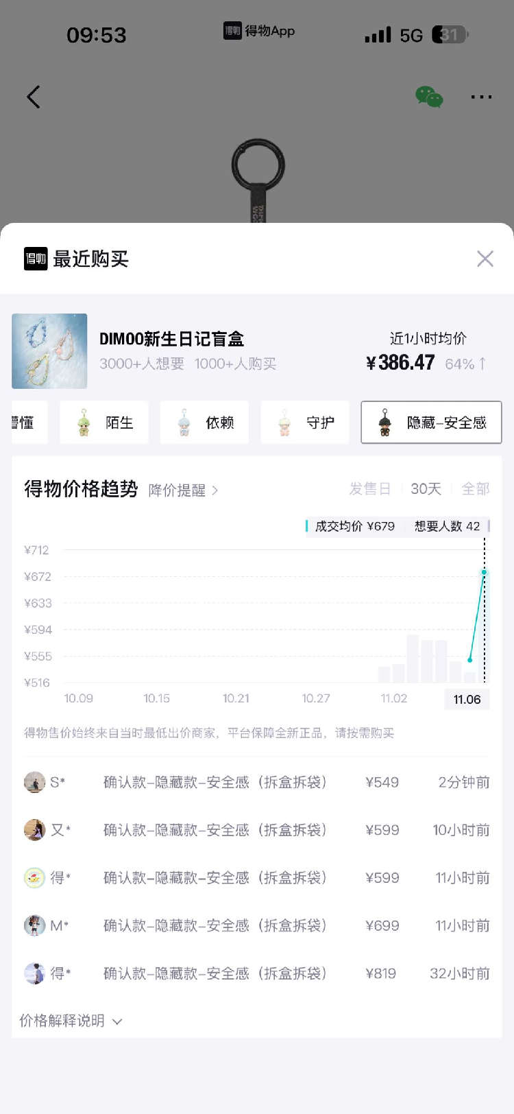 泡泡玛特DIMOO“新生日记”搪胶盲盒隐藏款“安全感”价格持续走高。