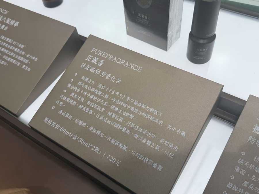 艾媒咨询数据显示,中国香水消费者近七成年龄在35岁以下。64.25%的使用者是为了“取悦自己,提升情绪价值”,远高于“社交功能”(40.3%)和“去除异味”(45.2%)的需求。来自中国澳门的品牌厚古,其香氛产品“正气香”配方取自唐代孙思邈的《千金要方》,现场喷洒可以闻到艾草为主的药香味道。工作人员介绍,产品运用了聚合物提取的技术,比单一提取技术更能保留中药分子。