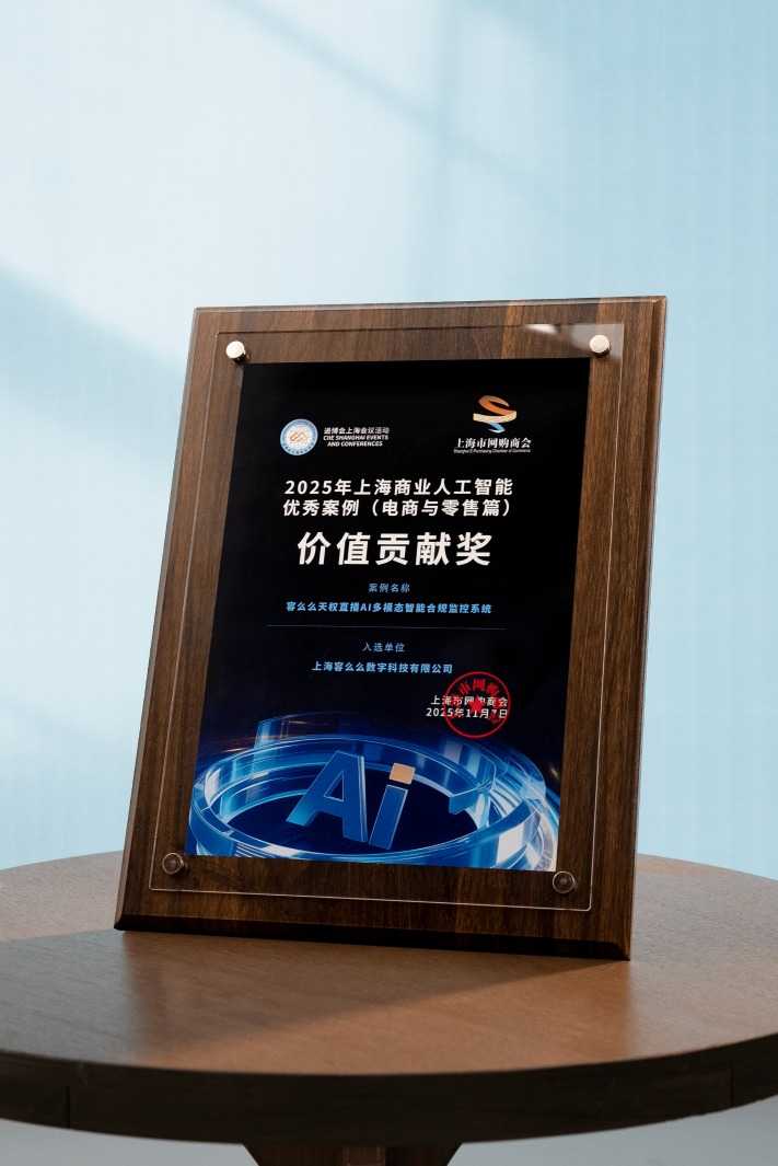 上证报中国证券网讯(记者宋薇萍)近日,在第八届进博会主题配套活动“第二届AI赋能电商创新与发展论坛”上,百秋尚美集团旗下上海容么么数字科技有限公司(简称容么么)的“天权直播AI多模态智能合规监控系统”成功入选《2025年上海商业人工智能优秀案例集(电商与零售篇)》,并获得“价值贡献奖”,成为十五家电商案例代表之一,显示出行业对直播合规技术创新的迫切需求与认可。