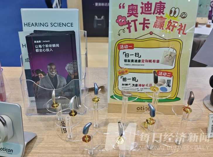 奥迪康展台上体形微小的助听器,图片来源:每经记者林姿辰摄