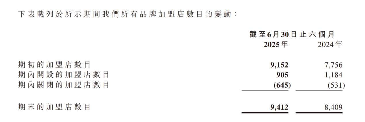半年报显示,2025年上半年,沪上阿姨关闭加盟门店645家,期末公司加盟门店数量为9412家,简单计算闭店率为6.9%。