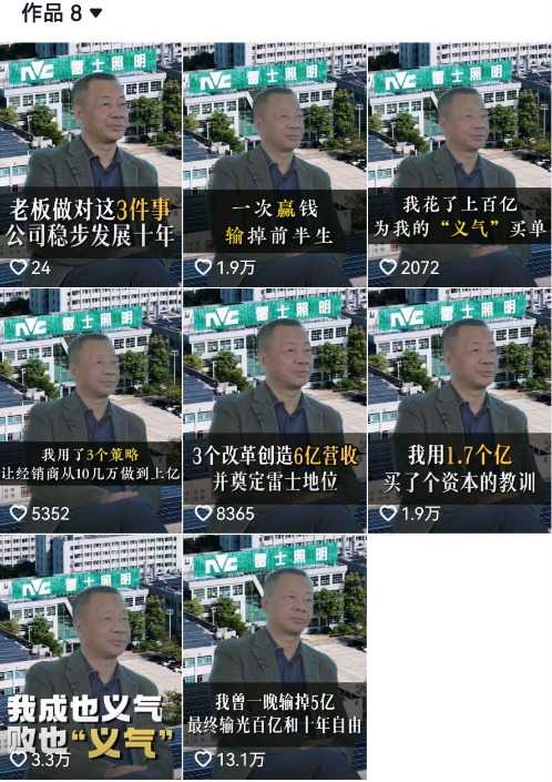 在其他视频中,吴长江围绕与王冬雷之间的纠纷、对资本的认知、如何获得经销商支持等话题进行分享。他认为,一个成功的企业家、一个好的创业者,必须敢冒风险,“但是不能把这种赌性放在赌博上,这样会导致你一无所有”。