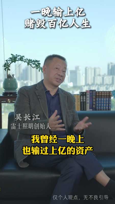 雷士照明创始人吴长江分享了自己因赌博导致财富尽失的人生经历。他提到自己曾一晚输过上亿元资产,并因此导致一系列决策失误和牢狱之灾。