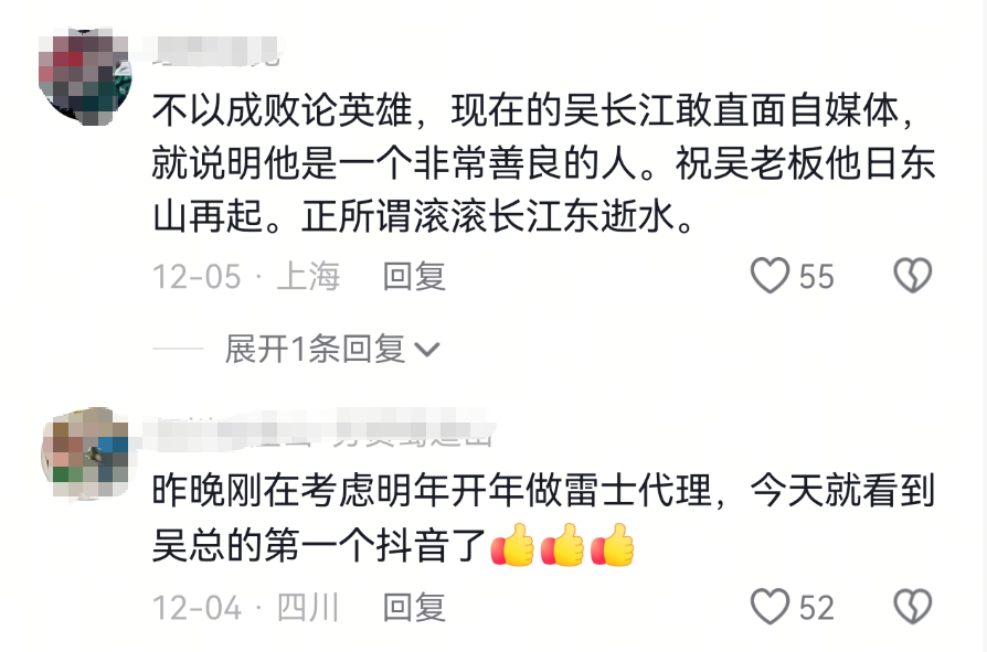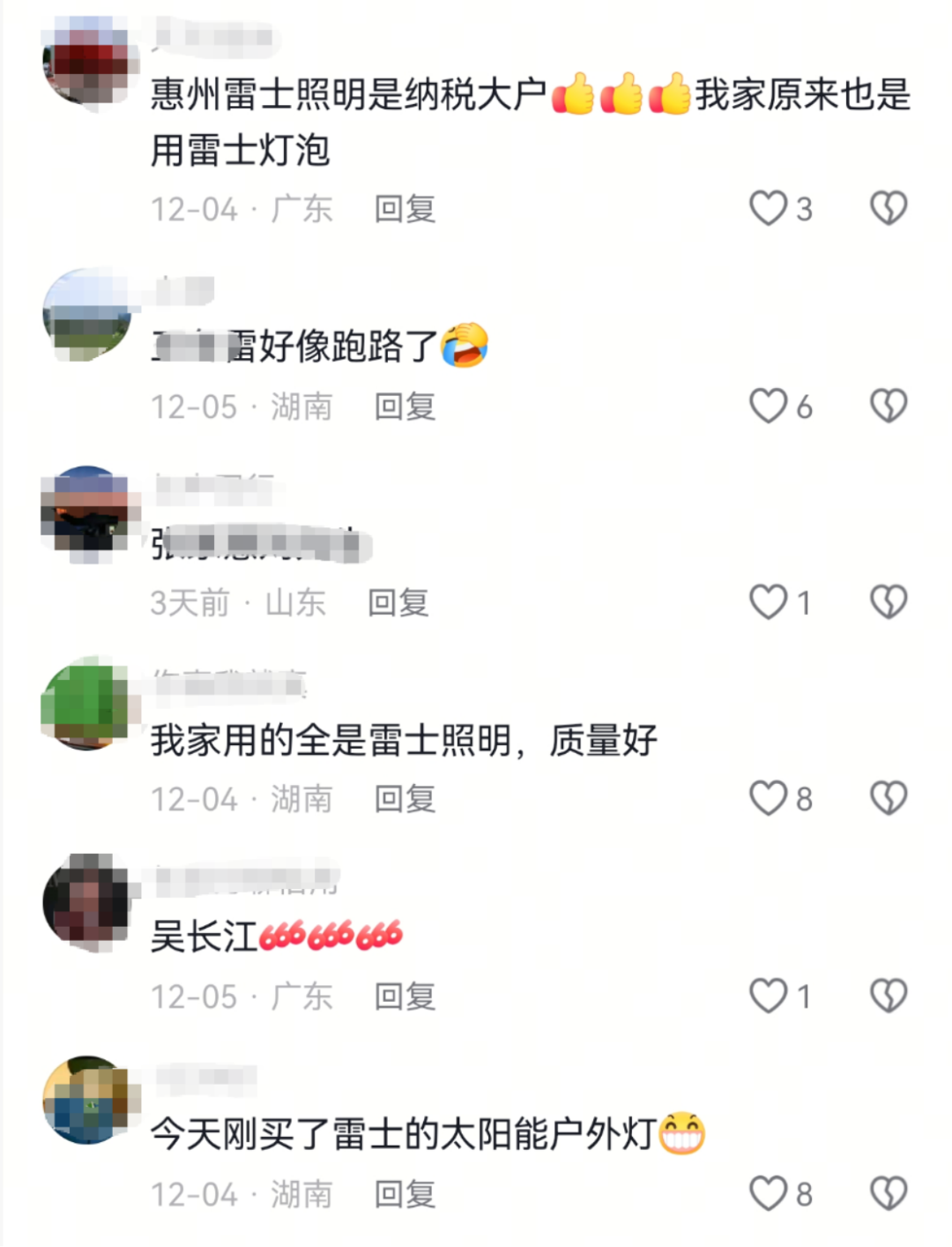 在留言区,大量网友对吴长江及雷士照明表达怀念及认可。
