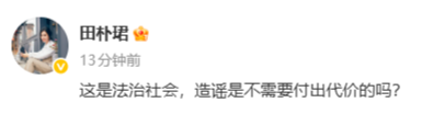 田朴珺微博发文称:这是法治社会,造谣是不需要付出代价的吗?